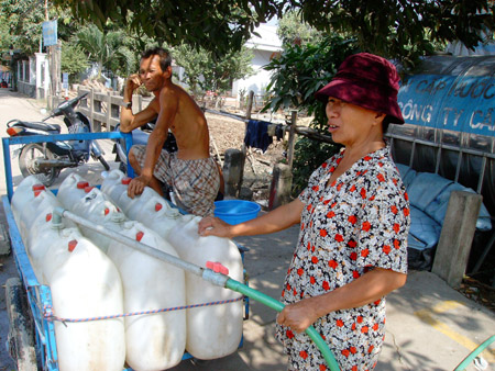 Để khắc phục tình trạng thiếu nước của những khu vực bị ô nhiễm nặng, SAWACO chỉ đưa ra được những giải pháp mang tính tạm thời như dùng xe chở bồn nước sạch đến để bán cho người dân.