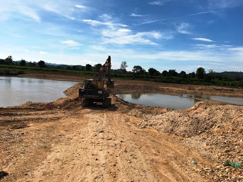 Cách con đập này không xa là công trường khai thác cát, sỏi của Công ty Xuân Tài đang hoạt động rầm rộ với nhiều loại máy móc. Ông Đỗ Xuân Tài, Giám đốc Công ty Xuân Tài, thừa nhận việc đắp đập là sai nhưng lại cho rằng không ảnh hưởng gì. “Làm thế này cũng không gây lở bờ mà còn giúp bà con thuận tiện đi qua khu sản xuất ở bên kia sông, không phải lội sông, lội suối” – ông Tài lý giải và cho biết nếu bị phát hiện sẽ trả lại mặt bằng cũ.
