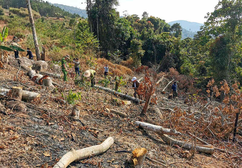 Qua khám nghiệm, diện tích rừng bị phá và đốt cháy khoảng 3.600 m2. Bước đầu, đối tượng Đ.K.Q thừa nhận phá 1.600 m2, từ tháng 11-2020; phần còn lại do V.H.C thực hiện vào thời điểm cuối năm 2019. Các đối tượng tiến hành hạ cây dưới tán rừng để tránh bị phát hiện. Gần đây, khi Tây Nguyên bước vào mùa khô, hai đối tượng tổ chức cắt cây thành từng khúc và đốt thì bị lực lượng chức năng phát hiện.