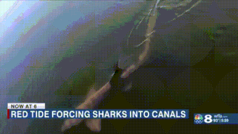 Các chuyên gia suy đoán rằng, những con cá mập này đang chạy trốn khỏi thủy triều đỏ chết chóc – thứ đã giết chết hơn 600 tấn sinh vật biển trong khu vực.