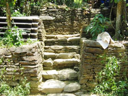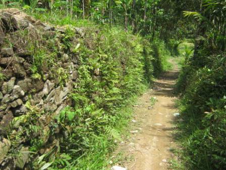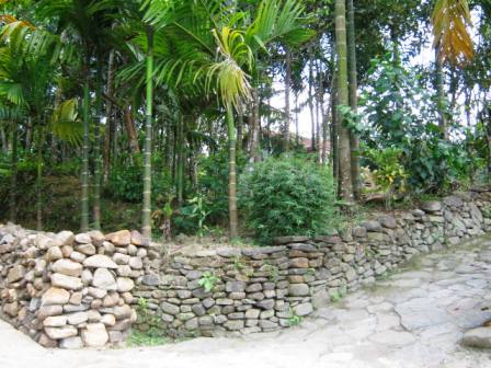 Ấn tượng đầu tiên khi tôi bước vào cổng làng là những bức tường đá thẳng tắp, cao ngang tầm người, nhiều bức đã nhiều năm tuổi, phủ màu rêu phong. Bức tường đá nơi đây không chỉ có tác dụng che chắn đơn thuần mà còn có nhiệm vụ ngăn những khối đất bất chợt rơi xuống từ những mảng đồi phía trên, giúp bảo vệ làng và cả những thửa ruộng vốn nằm sát núi.