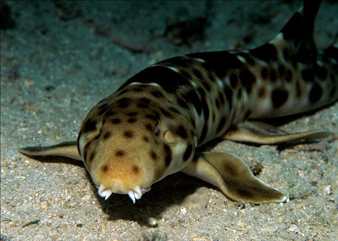 Cá mập đi bộ bằng vây, Hemiscyllium galei, được tìm thấy ở vịnh Cenderawasih (Indonesia) năm 2006. Loài cá mập này có thể bơi nhưng chúng thích dạo bộ dọc các rạn san hô bằng vây của chúng và săn tôm, cua, ốc sên cùng một số loài cá nhỏ.