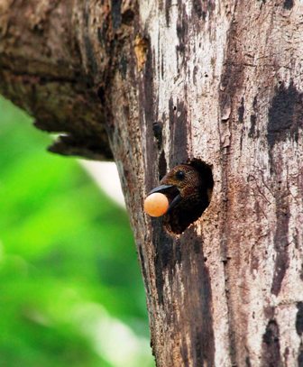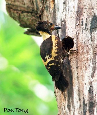 ThienNhien.Net – Gõ kiến đầu rắn thuộc họ Gõ kiến (Picidae), được tìm thấy tại Campuchia, Lào, Myanma, Thái Lan và Việt Nam. Môi trường sống tự nhiên của chúng là các khu rừng cận nhiệt đới, rừng ẩm vùng đất thấp nhiệt đới. Gõ kiến đầu rắn (tên tiếng Anh là Black and Buff Woodpecker, tên khoa học là Meiglyptes jugularis) thường làm tổ trong các hốc cây, chúng sở hữu hình dáng khá độc đáo với chiếc “bờm” lớn nằm trên đỉnh đầu trông như chiếc vương miện, giúp tôn thêm dáng cho cơ thể vốn khá nhỏ nhắn của chúng. Chiếc đuôi ngắn kết hợp với cái mỏ nhọn kèm bộ lông màu nâu đen được phối thêm nhiều mảng trắng ở phần xương vai, cổ và lưng khiến loài chim này càng trở nên đặc biệt. Trong khi con cái sở hữu chiếc trán và đội “vương miện” màu trắng ngà thì màu đen lại là dấu hiệu giúp nhận diện ra con đực.