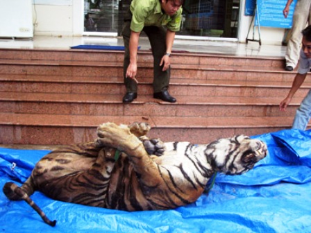 Xác hổ nặng 156,5 kg là tang vật tịch thu trong vụ án hình sự “vi phạm các quy định về bảo vệ động vật hoang dã quý hiếm” do Huỳnh Văn Hai (chủ Khu du lịch Thanh Cảnh, P.Vĩnh Phú, TX. Thuận An, tỉnh Bình Dương) và đồng phạm thực hiện đãbị lực lượng chức năng tỉnh Bình Dương bắt giữ và đưa ra xét xử hồi tháng 3/2011 vừa qua.