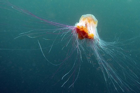 ThienNhien.Net – Sứa bờm sư tử (Cyanea capillata) là loài có kích thước lớn nhất trong họ sứa. Chúng sống trong những điều kiện thời tiết khắc nghiệt nhất, thậm chí suốt những tháng mùa đông lạnh giá, sứa bờm sư tử vẫn sinh trưởng được dưới bề mặt nước đã đóng băng. Loài này chỉ có mặt ở bắc bán cầu. Màu sắc của sứa bờm sư tử phụ thuộc vào kích thước cơ thể: cá thể lớn nhất có màu đỏ sẫm, những cá thể nhỏ hơn, màu sắc cơ thể sẽ sáng hơn. Giống như hầu hết các loài sứa khác, Cyanea capillata ăn thịt. Chúng thường ăn sinh vật phù du, các loài cá nhỏ và sứa lược. Sau khi bùng nổ thành làn sóng xâm thực, dẫn tới tình trạng đóng cửa của nhà máy điện hạt nhân Torness (Scotland) thì “tên tuổi” của loài sứa này càng được biết đến nhiều hơn.