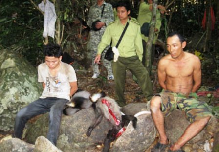 Ông Nguyễn Trọng Huynh, hạt trưởng Hạt kiểm lâm vườn quốc gia Núi Chúa (Ninh Thuận), cho biết sau nhiều lần mai phục, 16g ngày 19-7, lực lượng kiểm lâm đã bắt giữ Nguyễn Minh Tuấn (37 tuổi) và Đặng Minh Khắc (20 tuổi), cùng trú ở thôn Trung, xã Ninh Tân, huyện Ninh Hòa, tỉnh Khánh Hòa, về hành vi săn bắn thú rừng trái phép.