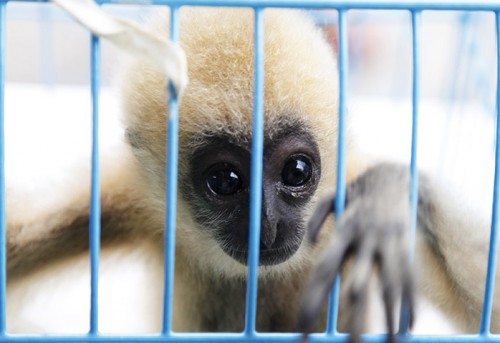 Gần đây, hoạt động buôn lậu vượn má trắng – loài bản địa quý hiếm của Việt Nam và Lào – đã lan rộng khắp Đông Nam Á. Cá thể vượn má trắng mới 3 tháng tuổi này đã được thu giữ từ một công dân của các tiểu vương quốc Ả Rập thống nhất (UAE). Trong chiếc vali của kẻ buôn lậu gần như có cả một vườn thú thu nhỏ.