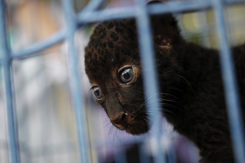 Trong 4 cá thể mèo lớn cùng đợt tịch thu có một cá thể báo con mới 2 tháng tuổi. Chúng được bán với giá của những “thú cưng” đắt đỏ.
