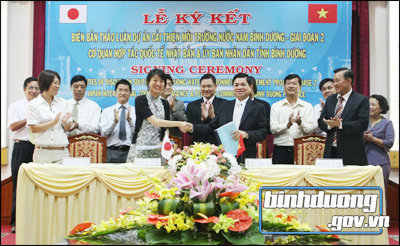 ThienNhien.Net – Chiều 31/8/2011, tại Bình Dương đã diễn ra Lễ ký kết biên bản thảo luận Dự án cải thiện môi trường nước Nam Bình Dương giai đoạn 2 giữa Cơ quan hợp tác quốc tế Nhật Bản (JICA) và UBND tỉnh Bình Dương. Tham dự và chứng kiến lễ ký kết có đại diện Văn phòng Chính phủ, đại diện Bộ Kế hoạch và Đầu tư; lãnh đạo các sở, ngành tỉnh và thị xã Thuận An.
