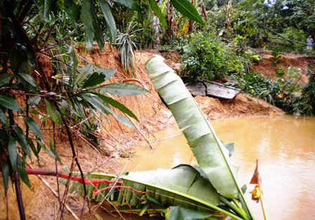 Nguyên nhân dẫn tới tình trạng trên, theo ông Sính là do mưa lớn nhiều ngày kết hợp mực nước sông dâng cao khiến các tuyến đê ven bờ bị ảnh hưởng. Một số ý kiến khác thì cho rằng nạn hút cát lậu dọc sông mới là lý do chính khiến lòng sông bị rút ruột và ven bờ dễ bị xói lở.