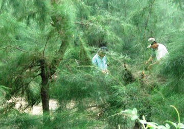 Đáng chú ý là vì gần biển, xa khu dân cư nên hoạt động chặt phá rừng tại khu vực này diễn ra khá công khai, nhất là vào sáng sớm hoặc giữa trưa. Cây đổ ngã tới đâu, “cát tặc” lộng hành tới đó, cứ thế, rừng phòng hộ bị “gặm nhấm” dần với diện tích không nhỏ sau mỗi mùa xây dựng.