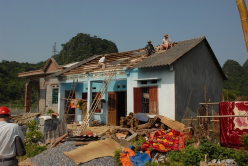 Trụ sở UBND xã Vân Trình – xã bị ảnh hưởng nặng nề nhất – cũng bị bay mất mái