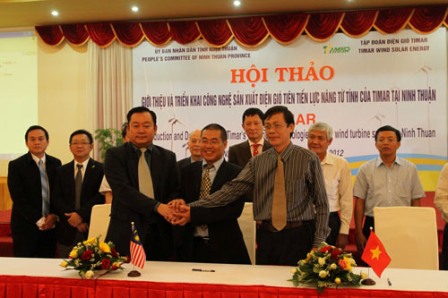 ThienNhien.Net – Sáng qua 14/05/2012, UBND tỉnh Ninh Thuận phối hợp với Tập đoàn Timar, Malaysia tổ chức Hội thảo về kỹ thuật điện gió và ký kết Bản ghi nhớ hợp tác đầu tư giữa UBND tỉnh Ninh Thuận và Tập đoàn Timar.