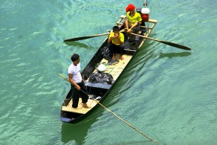 Con thuyền lướt nhẹ trên sông Lô ngược về phía thượng nguồn qua thị trấn Vĩnh Lộc (Chiêm Hóa) rồi lên xã Thanh Tương (Na Hang), chúng tôi may mắn gặp dược một cư dân cao tuổi đang quăng chài ven sông, ngay lập tức chúng tôi tấp thuyền vào bờ trò chuyện.