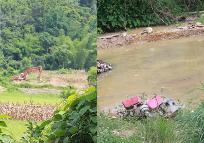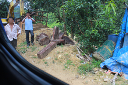 Phát hiện cuộc hành trình của chúng tôi, một số đối tượng đã mật báo cho nhau. Vì vậy, quãng đường xe chúng tôi đi đến địa phận thôn Nà Kể, xã Minh Khai, huyện Thạch An trở lên yên ắng lạ lùng. Ngay sát các nhà người dân hai bên đường là la liệt những chiếc thùng phuy dùng để đựng nhiên liệu cho máy xúc, máy nổ. Cách không xa nhà dân, một chiếc máy xúc đang nằm giữa ruộng, bên cạnh nhiều moong nước cũng không thấy có động tĩnh gì.