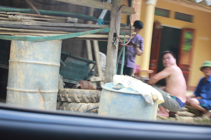 Khi chúng tôi dừng xe để quan sát bãi vàng Khau Liểm, hai người đàn ông trạc tuổi 40 lập tức xuất hiện với vẻ mặt rất cảnh giác và thiếu thân thiện. Người có khuôn mặt xương gầy truy xét: “Các ông làm gì ở đây?”. Không đợi chúng tôi trả lời, người này rút điện thoại ra báo tin cho ai đó rồi nói tiếp: “Ở đây không có gì. Các ông đi ngay cho”.