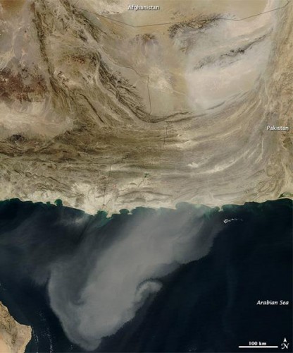 Ngày 5/12/2010, bụi bao trùm khu vực bán đảo Ả Rập sau khi 1 trận bão dữ dội quét qua Iran, Afghanistan và Pakistan. Tại thời điểm đó, Pakistan vẫn đang trong giai đoạn phục hồi sau một trận lụt.