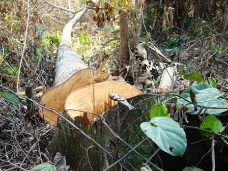 Thậm chí cả những cây thuộc họ muồng đường kính trên 40cm cũng bị cưa xăng cưa đổ.