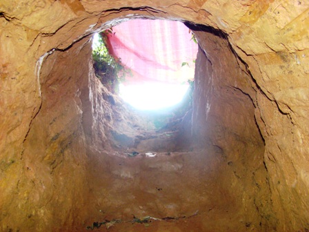 Thâm nhập vào một hang vàng cách điểm trường chưa đầy 30 mét, chúng tôi được một người đàn ông tự giới thiệu là chủ hang tên Nông Văn Tiên, nhà ở Nà Nôm. Tiên cho biết: “Đội của Tiên có tất cả 5 người, đều là anh em trong nhà, đã khai thác ở đây từ nhiều năm, nhiều hang vàng đào sâu cho đến khi gặp mạch nước mới thôi. Làm ở đây cách xa ủy ban xã nên không sợ bị phạt, khi nào cán bộ xuống thì mình đi chỗ khác. Lúc họ đi, mình lại làm tiếp”.