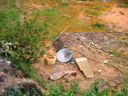 Dụng cụ phục vụ khai thác vàng trái phép là những chiếc xe rùa, cuốc, xẻng…
