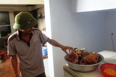 Đón thực khách, ông chủ nhà vồn vã giới thiệu từng mặt hàng kèm theo các mức giá không “mềm” chút nào. Tiếp thị xong các loại hàng ở gian bên ngoài, ông còn lôi tuột chúng tôi vào gian bếp, mở cả nắp chiếc tủ lạnh để chúng tôi tận mục sở thị một rổ đựng đầy thịt mà theo lời giới thiệu của ông là đủ loại thịt cầy, hươu, lợn rừng…