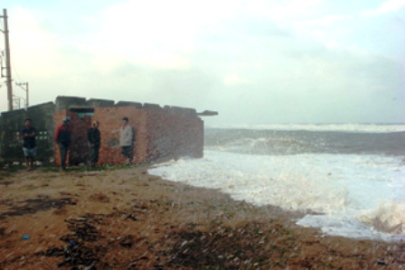 Đến 18 giờ tối ngày 24/12, những cột sóng lớn vẫn liên tục xuất hiện, đánh sập 3 ngôi nhà của các hộ ông Nguyễn Văn Máy, Hồ Minh Tin và bà Nguyễn Thị Loan cùng ở xóm Rớ.