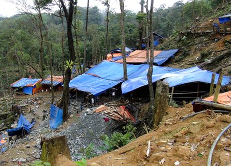 Hàng chục các hầm vàng khoét sâu vào lòng núi hàng trăm mét theo kiểu địa đạo hoặc theo phương thẳng đứng như cái giếng vươn lên giữa các quả đồi, được chống đỡ sơ sài. “Quá nguy hiểm. Lòng núi đã bị ‘rút ruột’, chỉ một trận mưa ngập nước các hầm có nguy sập dẫn đến chết người”, một cán bộ PC49 nhận định.