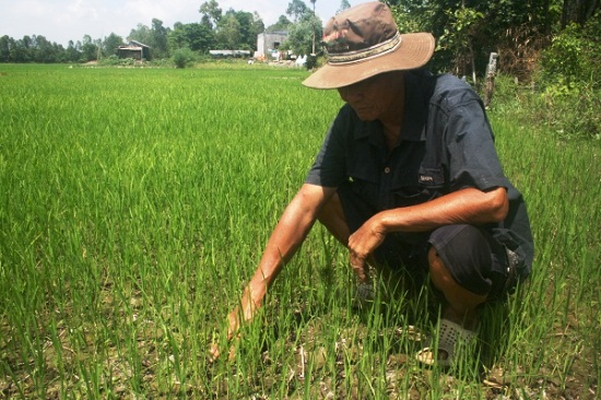 Tương tự, hàng ngàn ha lúa xuân hè thuộc hai huyện ven biển Long Phú và Trần Đề của tỉnh Sóc Trăng cũng đang bị nước mặn gây hại từng ngày. Trong đó, khoảng 2.700 ha lúa xuân hè xuống giống tự phát trên dưới 1 tháng tại các địa phương chưa có nguồn nước ngọt để bơm tưới, khả năng cứu chữa là rất khó khăn. Và theo tính toán, mỗi hec-ta lúa 1 tháng tuổi bị mất trắng, nông dân lỗ khoảng 7 triệu đồng.