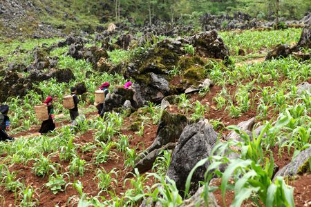 Ở Hố Quáng Phìn, không chỉ là dọn đá, lấy khoảng đất mà còn cõng đất phủ lên đá để trồng ngô. Đất ấy, mùa mưa lại bị dòng lũ cuốn đi, đến mùa sau lại… cõng.
