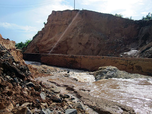 Xuất hiện thêm nhiều vết nứt lớn Bộ trưởng Bộ Xây dựng Trịnh Đình Dũng cho biết theo báo cáo nhanh của Cục Giám định nhà nước về chất lượng công trình xây dựng, thủy điện Ia Krêl 2 đang trong quá trình tích nước (đã tích nước được khoảng 4 tháng). Sự cố xảy ra vào khoảng 3 giờ sáng 12- 6 làm cho khoảng 40 m chiều dài thân đập bị vỡ hoàn toàn, không có thiệt hại về người. Tuy nhiên, diện tích lớn cao su của Công ty TNHH Cao su 72, Binh đoàn 15 – Bộ Quốc phòng và nương rẫy, hoa màu của dân dân bị hư hại. Tại thời điểm vỡ đập, mực nước thấp hơn cao trình đập tràn khoảng 1,6 m. Kiểm tra tại hiện trường cho thấy cống dẫn dòng nằm trong thân đập có dấu hiệu bị vỡ. Bề mặt đập (khu vực không bị vỡ) đang xuất hiện nhiều vết nứt lớn. B.Trân |