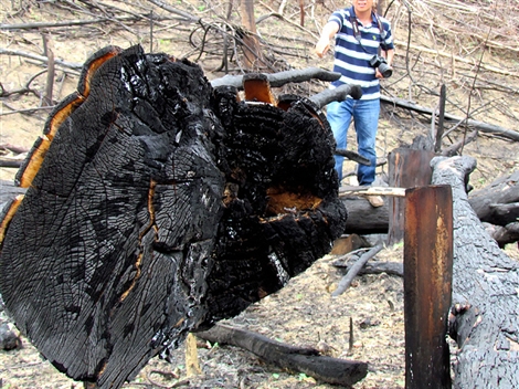ThienNhien.Net – Ông Nguyễn Văn Thanh, Phó Hạt trưởng Hạt Kiểm lâm huyện khánh Vĩnh (Khánh Hòa) xác nhận, vùng rừng bị đốt phá cháy đen trong các ảnh đưới đây là rừng phòng hộ ở tiểu khu 105, đầu nguồn sông Chò.