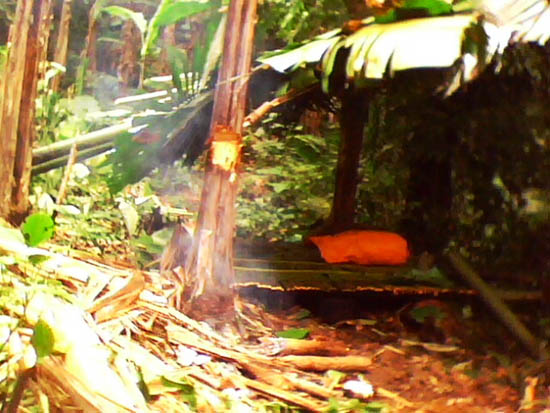 Thi thoảng trên tầng thảm mục rừng có xác những con thú nhỏ như don, chuột đang phân hủy, có thể chúng đã chết rữa thê thảm trong những chiếc bẫy mà thợ săn bỏ sót không kiểm tra. Một vài lán nhỏ lợp mái lá được dựng sơ sài, trên nền đất còn vất vương những que kẹp, xiên nhọn xém đen hai đầu, một số mẩu củi cháy dở được cố tình dụi tắt. Anh Toàn bảo thợ săn thường lập lán và nấu ăn ngay dưới những gốc cây to ven suối để tránh bị kiểm lâm phát hiện.