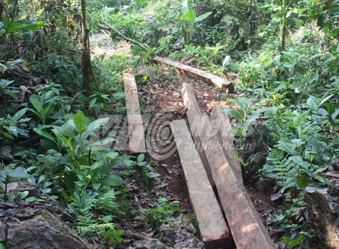 Tổ công tác liên ngành là 2 căn lều căng bạt nằm chênh vênh trên sườn núi. Đồng chí kiểm lâm dẫn tôi vào trong lều, chỉ những chồng thớt nghiến xếp quanh lều, kín gầm giường.