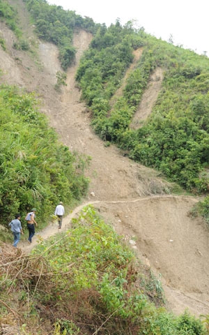 Ngỏ ý muốn nhờ đích thân chủ tịch xã dẫn anh em phóng viên ra tận hiện trường vụ sạt lở, ông lắc đầu nguầy nguậy: “Các anh cứ đi khoảng 4km rồi hỏi. Tôi bận, các cán bộ cũng đều bận, không ai có thể đi cùng các anh được.