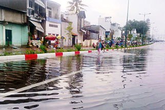 Anh Trần Văn Thời, ngụ phường 11, quận Bình Thạnh, nơi con đường đi qua, bức xúc: “Đường mới làm xong, đẹp hết biết, vậy mà chỉ một cơn mưa nho nhỏ thì đã ngập qua mắt cá chân, còn mưa lớn như ngày 10.9 thì ngập gần tới đầu gối, nước tràn qua cả dải phân cách. Kiểu này không bao lâu thì đường sẽ xuống cấp”.