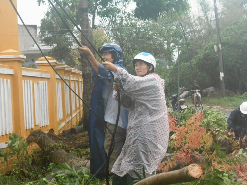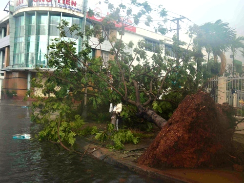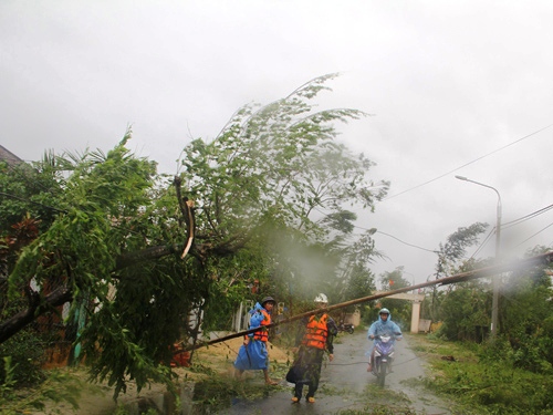 Tại các tuyến đường Hồ Quý Ly (quận Thanh Khê), Tôn Đức Thắng (quận Liên Chiểu), những cây xanh to cũng bị bão quật bật gốc. Nhiều cây xanh ngã đổ kéo theo các trụ điện cũng đổ gãy.