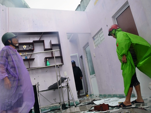 “Khoảng hơn 1 giờ sáng, dàn la-phông bắt đầu đổ sập. Tôi cùng gia đình vội vã chạy xuống tầng trệt lót chiếu nằm. Đến khoảng hơn 2 giờ sáng thì nghe gió cuốn mái tôn ầm ầm. Gió đẩy cửa kính vỡ vụn” – Bà Hoa kể.