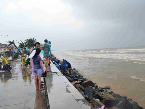 Ông Nguyễn Liêm, Chủ tịch xã Hải Dương, thị xã Hương Trà, Thừa Thiên – Huế, cho biết sóng lớn đã làm vỡ tuyến đê từ trung tâm xã vào xóm Cồn Đâu. Đoạn đê này bị vỡ với chiều dài gần 5 m, chỉ còn lại bờ kè đá mong manh ở mép biển, chỉ đi bộ qua được.
