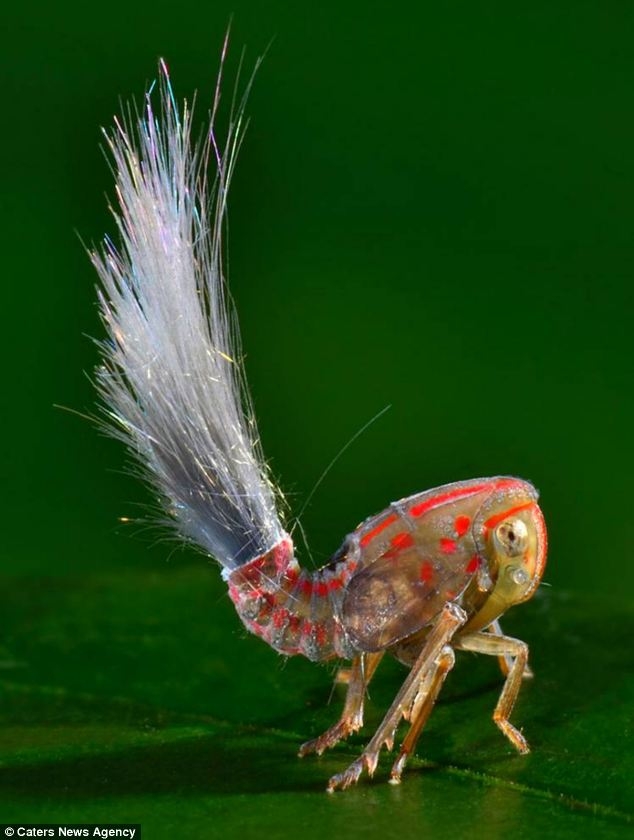 Phía sau cơ thể nó có một túm đuôi màu trắng cước nhô ra trông giống như búp bê Troll với bộ tóc điện giật đầy màu sắc – món đồ chơi phổ biến trong những năm 1990. Túm đuôi này được tạo ra từ loại sáp tiết ra từ tuyến giáp đặc biệt trong bụng của con côn trùng.