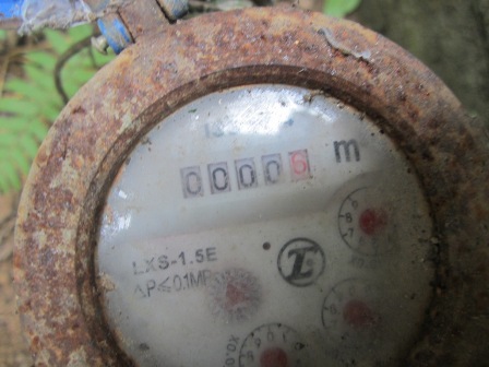 Nói dứt lời ông Vương dẫn chúng tôi ra đằng sau nhà để xem đường ống dẫn nước cùng chiếc đồng hồ nước đã lắp được 7 năm nhưng vẫn vẻn vẹn 5 con số 0, vì chưa từng có một giọt nước nào chạy qua đường ống này.