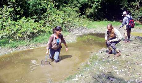Marta khoe với mọi người những chú cá cóc vừa mới tìm thấy trong vũng lầy (Ảnh: ThienNhien.Net)