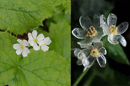 ThienNhien.Net – Khi tiếp xúc với nước, những bông hoa có màu trắng như ngọc trai bắt đầu chuyển sang dạng trong suốt như thủy tinh.
