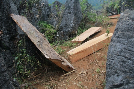 | Mặc dù có kiểm lâm bám địa bàn thường xuyên, song tình trạng khai thác nghiến ở huyện Thông Nông, tỉnh Cao Bằng vẫn diễn ra như chỗ không người, thậm chí có đến hai ngôi nhà sàn 100% nghiến được dựng lên nhưng kiểm lâm không hề hay biết. |