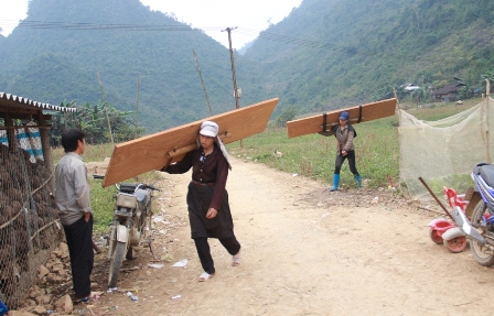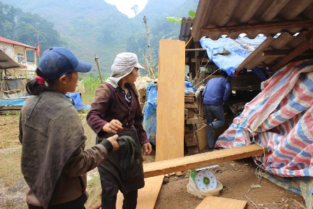 Tiếp cận thêm ở thôn Tả Bốc tại vị trí cách trường tiểu học Tả Bốc không xa, chúng tôi chứng kiến hai ngôi nhà sàn 4 gian đỏ au vẫn đang dựng dở. Thớ gỗ của các cột, kèo còn tươi rói, thơm mùi đặc trưng. Toàn gỗ nghiến cả. Nghe nói nó chuẩn bị được đưa về xuôi?!