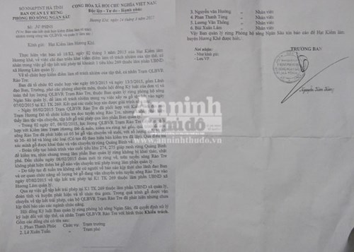 Lý do là những cán bộ, nhân viên này liên quan đến vụ việc thiếu trách nhiệm trong công tác quản lý bảo vệ rừng để cho lâm tặc vận chuyển gần 40m3 gỗ (nhóm 2 đến nhóm 8) tập kết tại bến sông Rào Tre, xóm 4, xã Hương Lâm, huyện Hương Khê vào ngày 7-2 vừa qua.