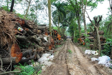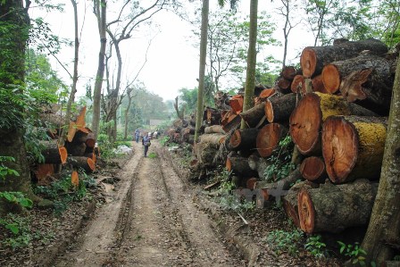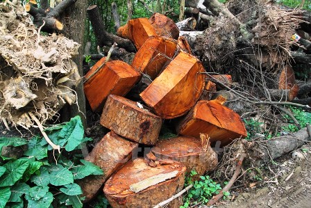ThienNhien.Net – Hàng trăm khối gỗ được tập kết la liệt tại vườn ươm của Xí nghiệp sản xuất Cây xanh Cây hoa Cây cảnh tại Cầu Diễn (Nam Từ Liêm, Hà Nội).