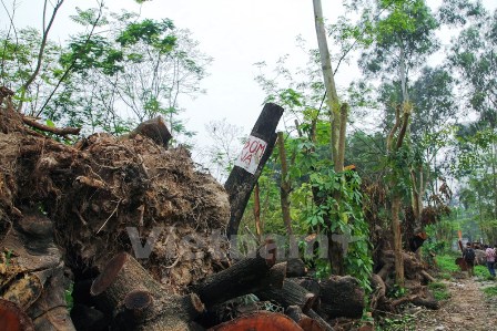 Sau khi bị đốn hạ, gỗ cây đô thị sẽ được vận chuyển về các kho gỗ có nhiều địa điểm tại Hà Nội (Ảnh: Minh Sơn-Sơn Bách/Vietnam+)Riêng tại vườn ươm của Xí nghiệp Sản xuất Cây xanh, cây hoa, cây cảnh tại Cầu Diễn (Nam Từ Liêm) tổng cộng có 186,9 khối xà cừ và 31,69 khối gỗ khác (Ảnh: Minh Sơn-Sơn Bách/Vietnam+)Cận cảnh những thân cây có đường kính lên tới cả mét (Ảnh: Minh Sơn-Sơn Bách/Vietnam+)Cận cảnh những thân cây có đường kính lên tới cả mét (Ảnh: Minh Sơn-Sơn Bách/Vietnam+)Những thân cây mới được chặt vẫn còn mang nguyên ‘dấu tích phố phường’ (Ảnh: Minh Sơn-Sơn Bách/Vietnam+)Những thân cây mới được chặt vẫn còn mang nguyên “dấu tích phố phường” (Ảnh: Minh Sơn-Sơn Bách/Vietnam+)Theo Phó Giám đốc Công ty Công viên Cây xanh Hà Nội: Mặc dù bên ngoài còn tươi tốt, nhưng khi chặt hạ, bên trong có nhiều cây đã bị mục ruỗng nghiêm trọng (Ảnh: Minh Sơn-Sơn Bách/Vietnam+)Đối với những cây nằm ở sâu trong khu dân cư, các công nhân buộc phải cưa cắt thành thớt để thuận tiện vận chuyển về vườn ươm (Ảnh: Minh Sơn-Sơn Bách/Vietnam+)Cận cảnh kho gỗ tại vườn ươm (Ảnh: Minh Sơn-Sơn Bách/Vietnam+)Gỗ mục được để tại một khu vực riêng, đã phơi sương nắng hàng năm trời. (Ảnh: Minh Sơn-Sơn Bách/Vietnam+)Gỗ mục được để tại một khu vực riêng, đã phơi sương nắng hàng năm trời. (Ảnh: Minh Sơn-Sơn Bách/Vietnam+)Bên cạnh các cây đã đốn, 128 cây từ đường Nguyễn Chí Thanh cũng được đưa về vườn ươm để “phục hồi sức khỏe” trước khi đem đi trồng lại (Ảnh: Minh Sơn-Sơn Bách/Vietnam+)