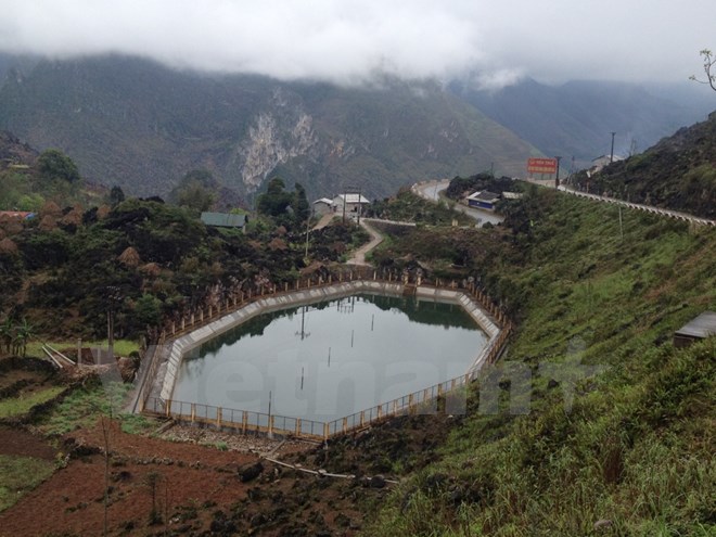 Theo ghi nhận của phóng viên VietnamPlus, vào những ngày giữa tháng Ba, các hồ treo nằm vắt vẻo trên các sườn đồi của vùng cao nguyên đá đều đã cạn nước, một số hồ treo khô đáy, chỉ còn lại những vạt rêu xanh. Xa xa giữa những hẻm đá, sườn núi, những người nông dân bé nhỏ vẫn phải lùi lũi gùi can đi vào rừng tìm từng giọt nước.