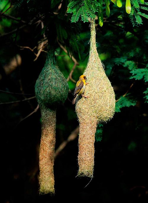 Tổ của loài chim sẻ Ploceidae ở Nam Phi, Namibia và Botswana có thể là nơi trú ẩn của hàng trăm con chimChúng chia tổ thành nhiều ‘phòng’Lấy nguyên liệu từ cỏ và củi khô, nhiệt độ trong tổ cao hơn bên ngoài giúp chúng giữ ấm cơ thể vào ban đêmLoài chim Vogelkop Bower được coi là những kiến trúc sư đại tài trong thế giới động vậtNhững con chim trống dựng nên những ‘túp lều nhỏ từ cỏ và củi khô để thu hút bạn tình. Chúng còn trang trí cho chiếc tổ bằng những quả mọng, bọ cánh cứng, hoa đầy màu sắcMối la bàn thường xây tổ của chúng thành những gò cao, hình nêmGiống như cái tên của nó, tổ của mối la bàn được xây theo hướng Bắc-NamHầu như toàn bộ cuộc sống của loài ong mật đều xoay quanh tổ của chúng, chúng ‘nấu ăn’ và nuôi dạy những ‘đứa trẻ’ trong chiếc tổ ấyTổ của loài chim sẻ lò đỏ được xây từ đất sét và bùn, chúng đủ chắc chắn để ngăn cản những mối nguy hiểm luôn rình rậpRồng rộc đầu vàng Baya Weaver được coi là những thợ dệt khéo léoChúng thường treo tổ trên những cây keo đầy gai hoặc những dây leo giữa hồ nước để tránh những kẻ săn mồiOng vò vẽ thường trộn bột gỗ, nước bọt của chúng và nhựa cây thành một hỗn hợp kết dính. Chúng sẽ dùng hỗn hợp này để xây tổChim vàng anh Montezuma thường dùng cỏ để dệt tổ. Tổ của chúng được treo trên những cành cây nhỏChim nhạn xây tổ bằng chính nước bọt của chúngTổ của loài chim này có thể ăn được, thâm chí được coi là đặc sản ở một số nơiNgôi nhà độc đáo của Ấu trùng CaddisflyLoài này thường sống ở sông, suối