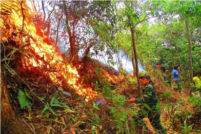 Giữa trưa nắng nóng cùng với lớp lá mục dưới gốc thông vài chục năm tuổi đã khiến cho công tác chữa cháy không hiệu quả. Hơn nữa, do địa hình phức tạp, việc vận chuyển nước phục vụ cho việc chữa cháy gặp nhiều khó khăn, lực lượng chức năng phải dùng vỉ sắt hoặc các cành cây để dập lửa.
